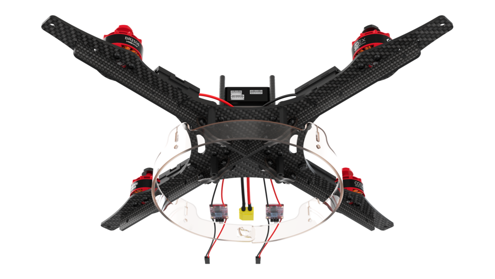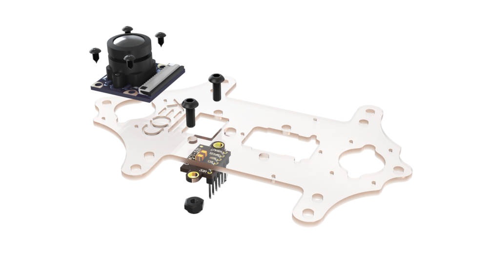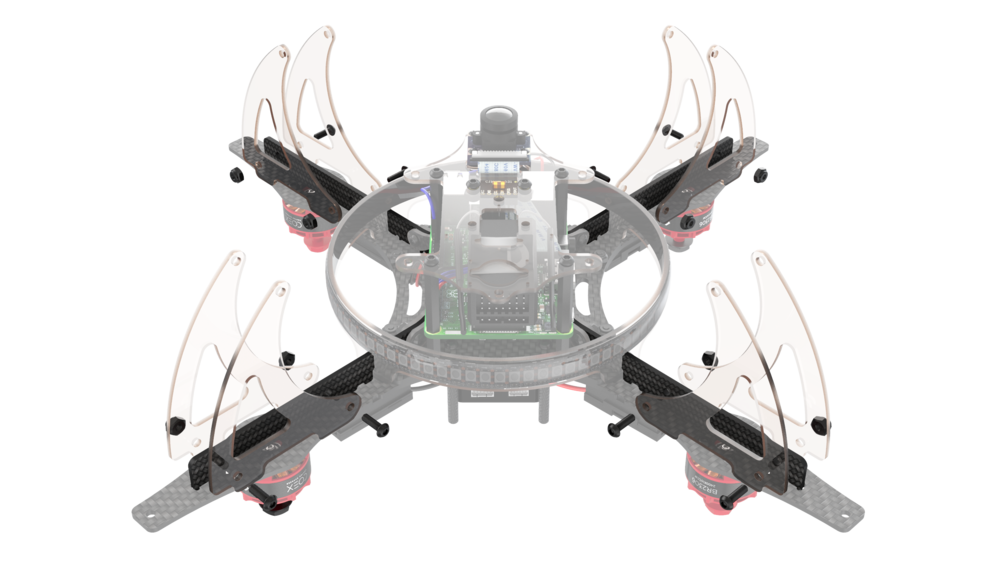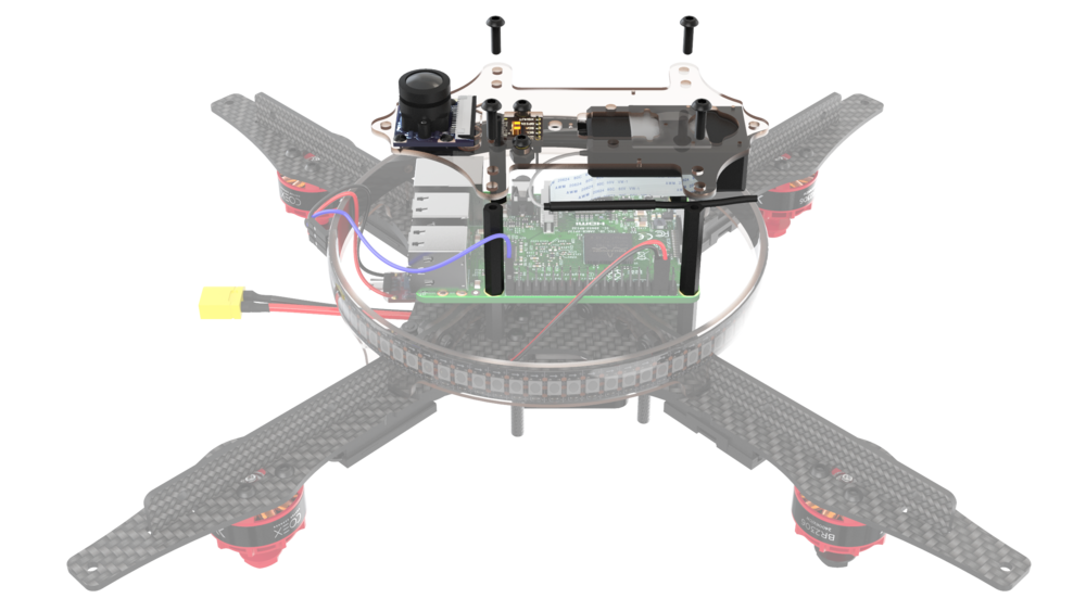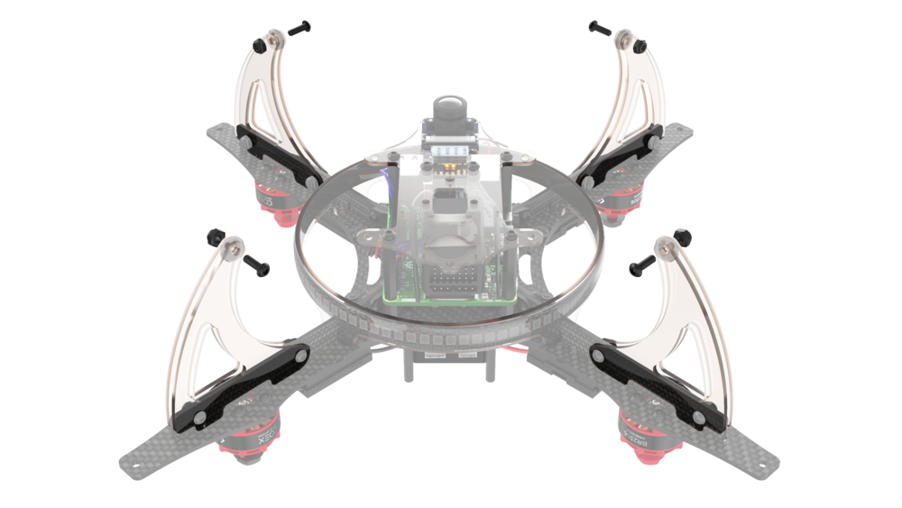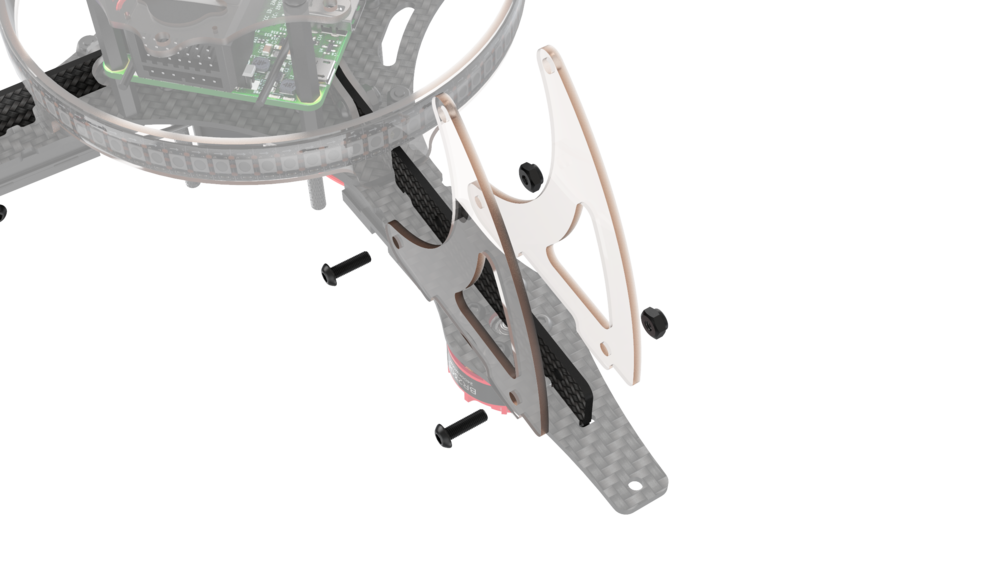 Attach the assembly to the drone using four M3x10 screws and steel nuts.