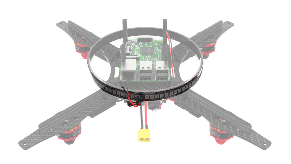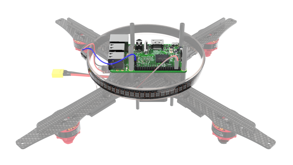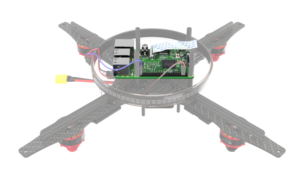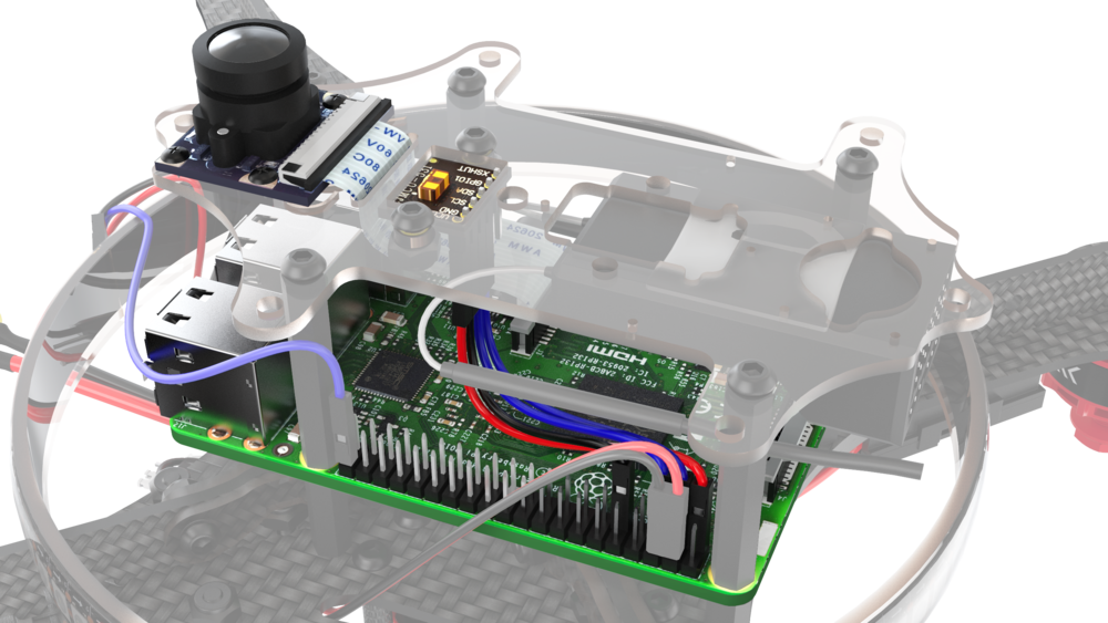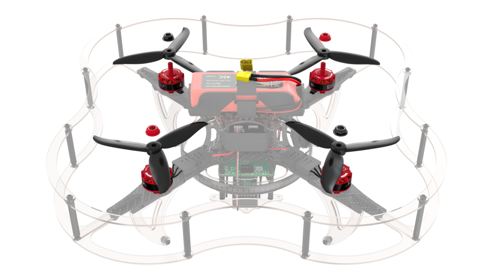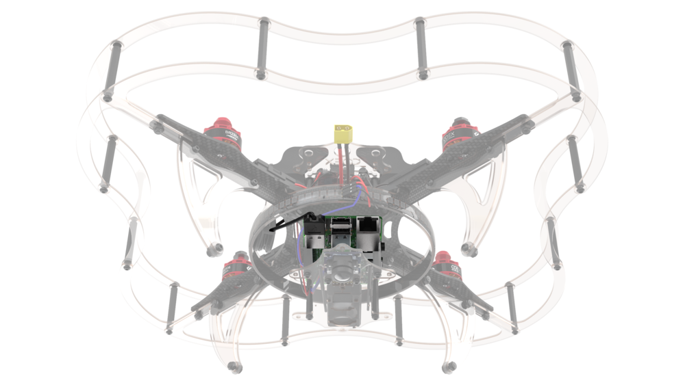 Attach the assembly to the drone using four M3x10 screws and steel nuts.