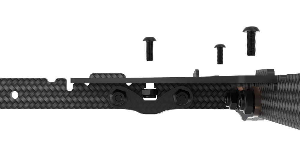 Attach two 15 mm spacers to the top carbon deck using M3x8 screws.
