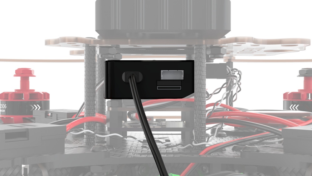 Attach the USB cable reel where convenient using 3M double-sided adhesive pads while making sure the cable does not interfere with the propellers.
