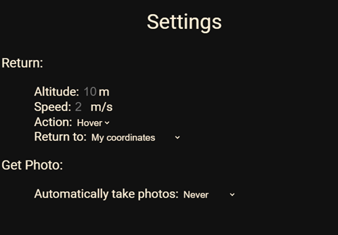 In the settings users can set speed and altitude of the return.