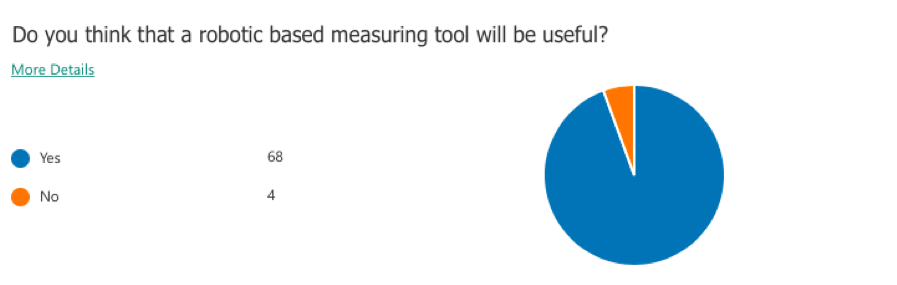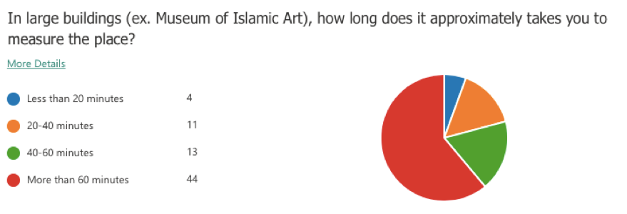 A questionnaire was conducted for this project to study the need for an indoor mapping drone which involved 72 architects and interior designers. The following question was asked to have an estimate of the time taken by the targeted category for taking the measurements of a large building. According to the survey results, 61% of the sample consume more than 60 minutes to measure a large building. This shows that the measurement taking process is time-consuming.