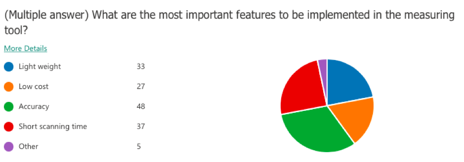 Based on the conducted survey, accuracy is the most important characteristic to be satisfied with the project. The below figure demonstrates that 48 of the sample sizes care about having high accuracy. Moreover, the second most important feature to be reached is having a short scanning time, which highlights the importance of the project.