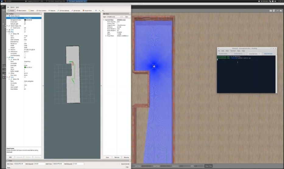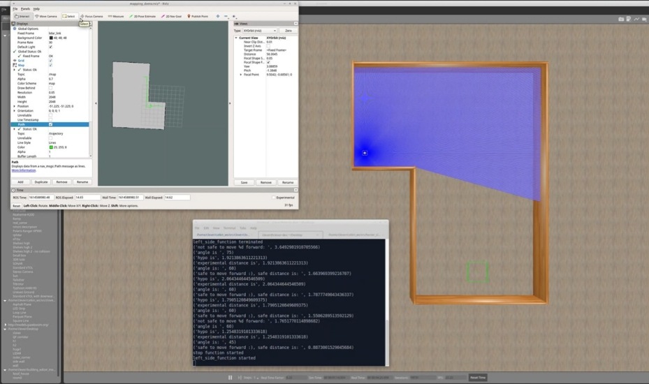The above figure demonstrates the drone exploring a maze autonomously while constructing a 2D map in real-time. The terminal shows the safe distances to move forward, these distancing where calculated using the aforementioned flowchart.