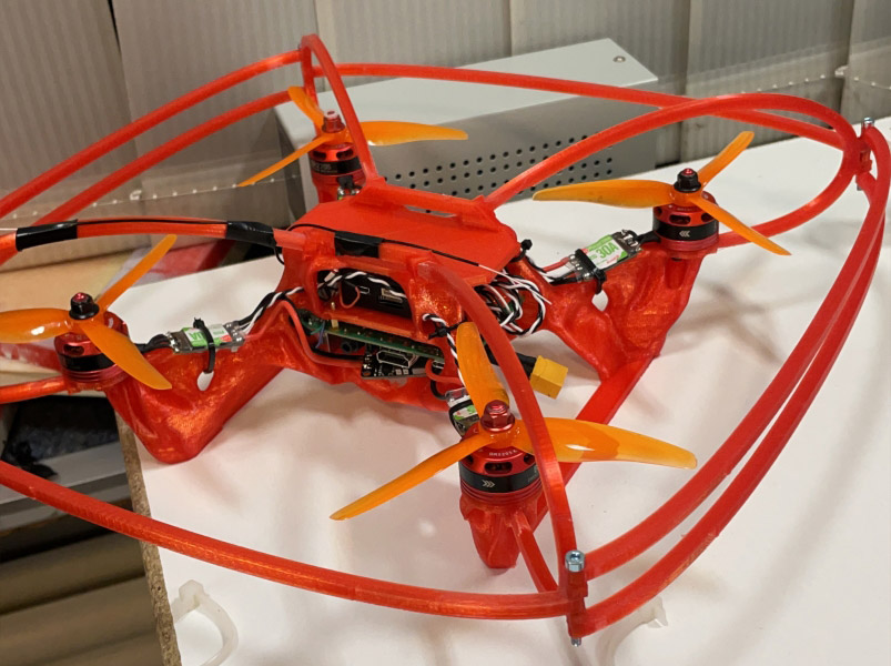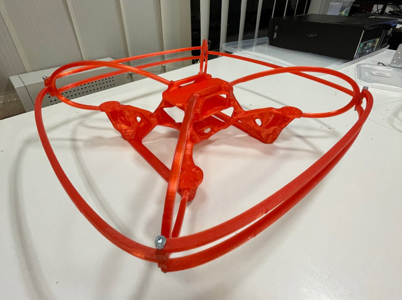 - Single material reduces supply chain complexity and reduces cost. Filament is cheap and only around 400 grams are needed for the full frame and the prop guard. This should reduce the cost to under $5.