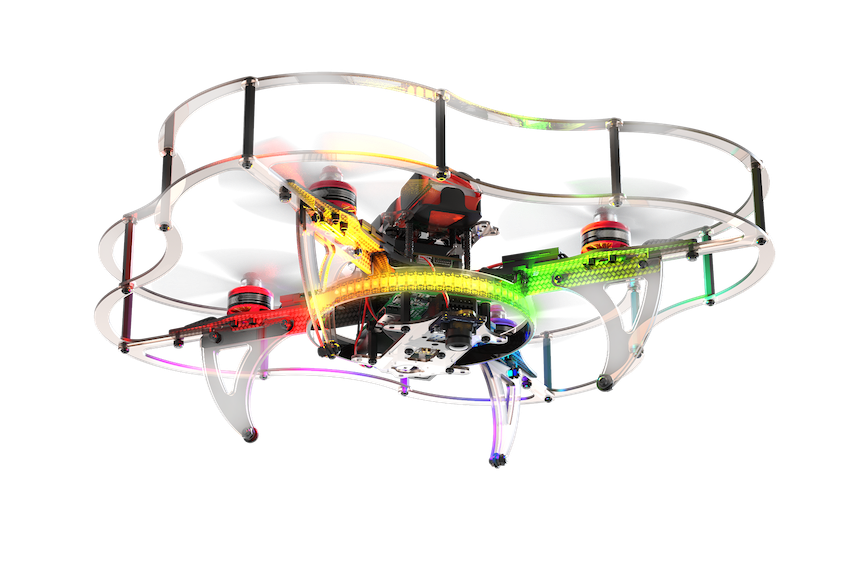 Clover drone kits contain addressable LED strips based on ws281x drivers. Each LED may be set to any one of 16 million possible colors (each color is encoded by a 24-bit number). This allows making the Clover flight more spectacular, as well as show flight modes, display stages of current user program, and notify the pilot of other events.