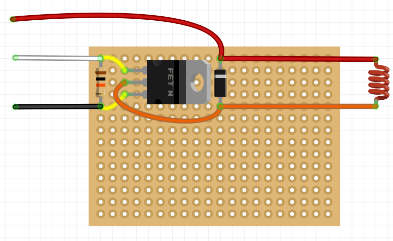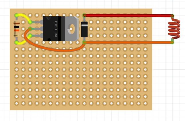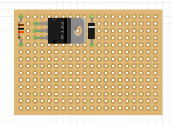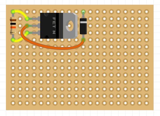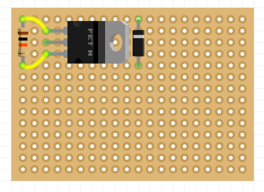 Place the Schottky diode, 10K resistor, and transistor on the soldering board.