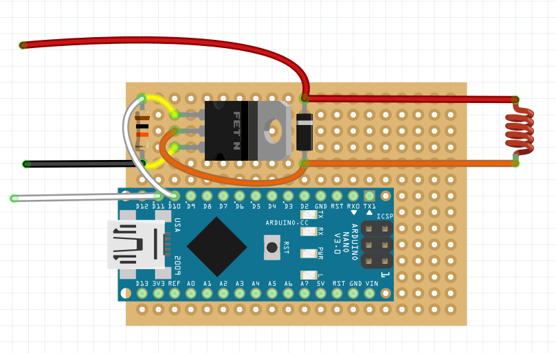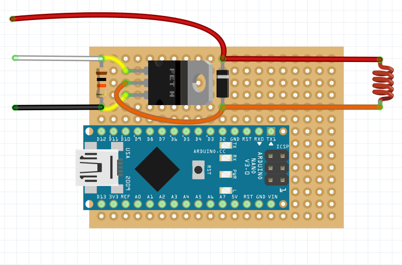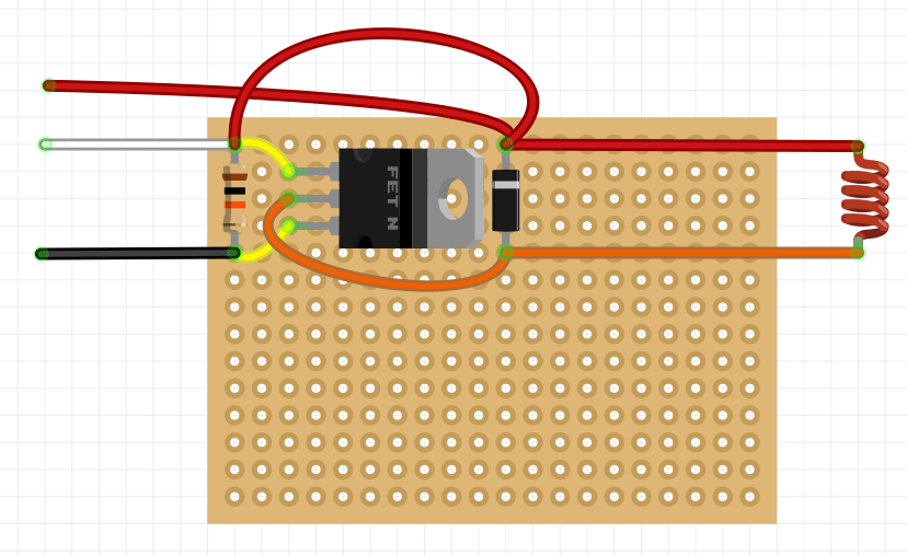 It is recommended to lay the wiring between the elements on the back side of the board (in the following images, the wiring is done over the diagram for illustrative purpose).
