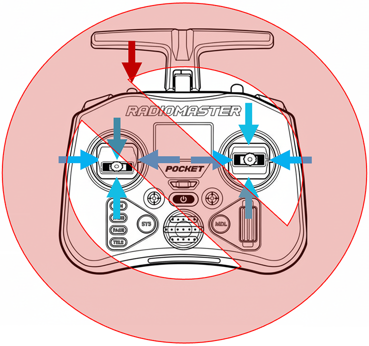 - После касания земли удерживайте стик газа в нижнем положении 2-3 секунды, пока моторы не остановятся (Disarm)