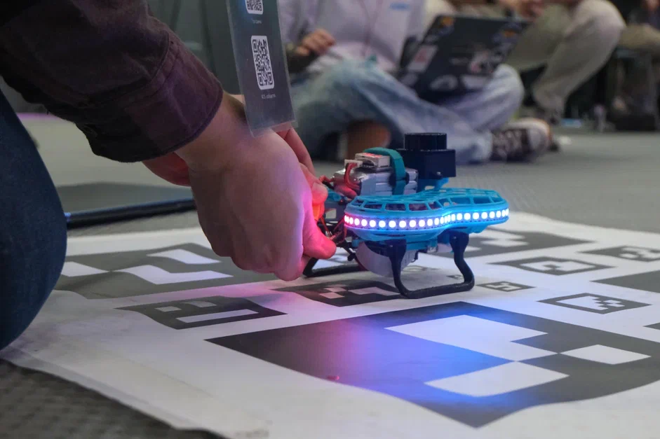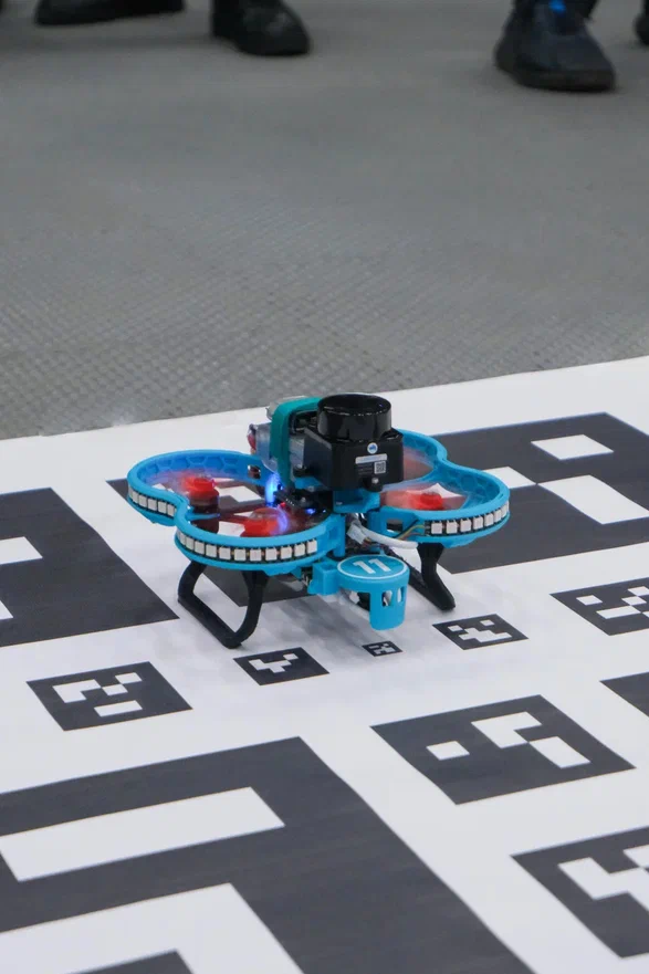 - Медленно и плавно поднимите дрон на высоту ~30-50 см над картой, чтобы камера увидела несколько маркеров
