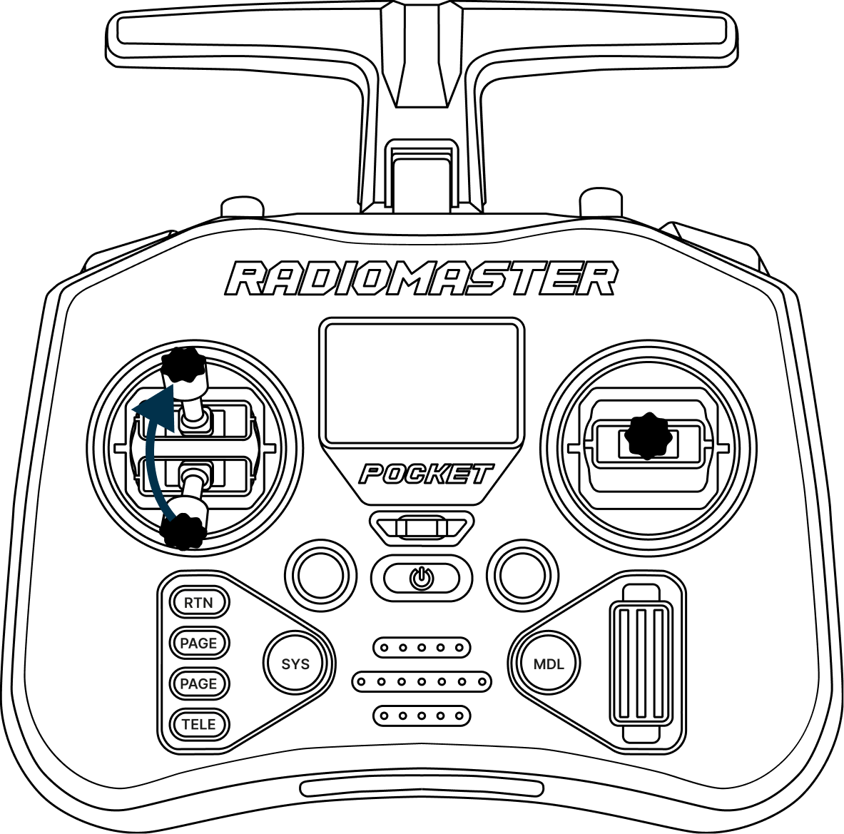 Перевести левый стик вниз, а правый в центральное положение