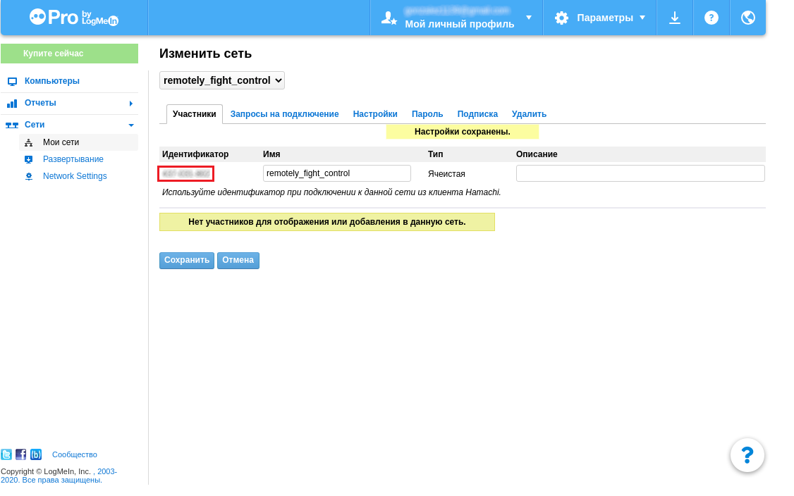 В открывшемся окне Изменить сеть необходимо запомнить значение поля Идентификатор сети, он будет использоваться в дальнейшем для подключения.