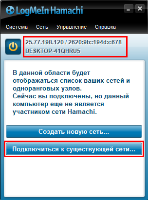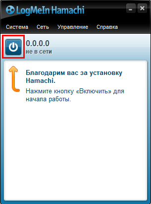 Запустите приложение Hamachi и нажмите кнопку включения. При необходимости введите свой логин.