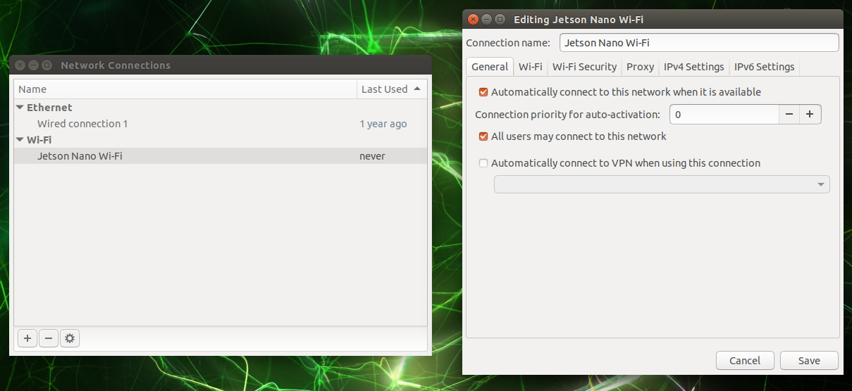 На плате-носителе изначально нет Wi-Fi-адаптера. Для организации беспроводного подключения к Jetson Nano следует использовать USB-адаптер или Wi-Fi карту стандарта M.2. Следует свериться со списком совместимого оборудования перед установкой адаптера.