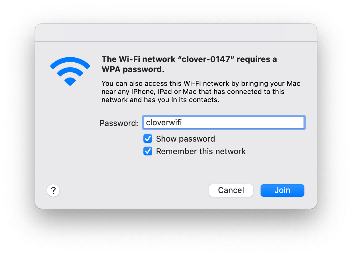 Подключитесь к Wi-Fi, используя пароль cloverwifi