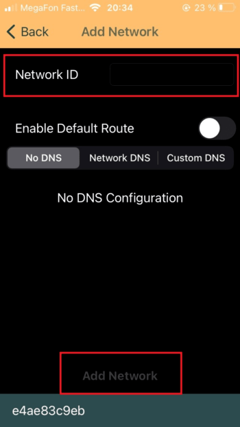 Введите ID вашей сети и нажмите кнопку Add Network.