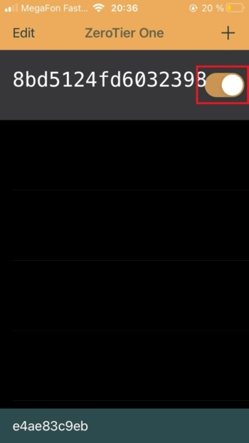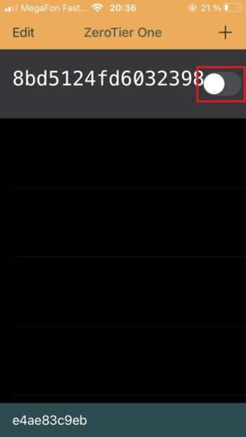 Подключитесь к VPN сети, сдвинув ползунок активации сети.