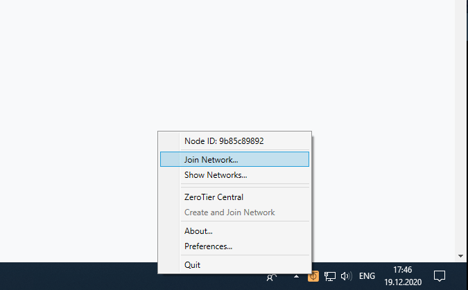 В появившемся окне введите ID вашей сети и нажмите кнопку Join.